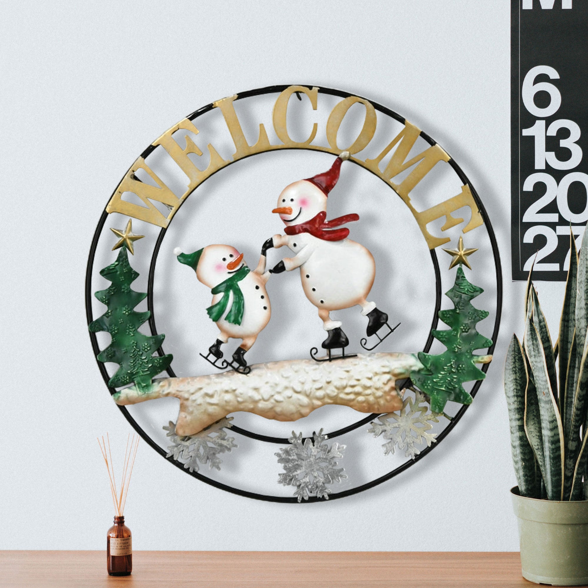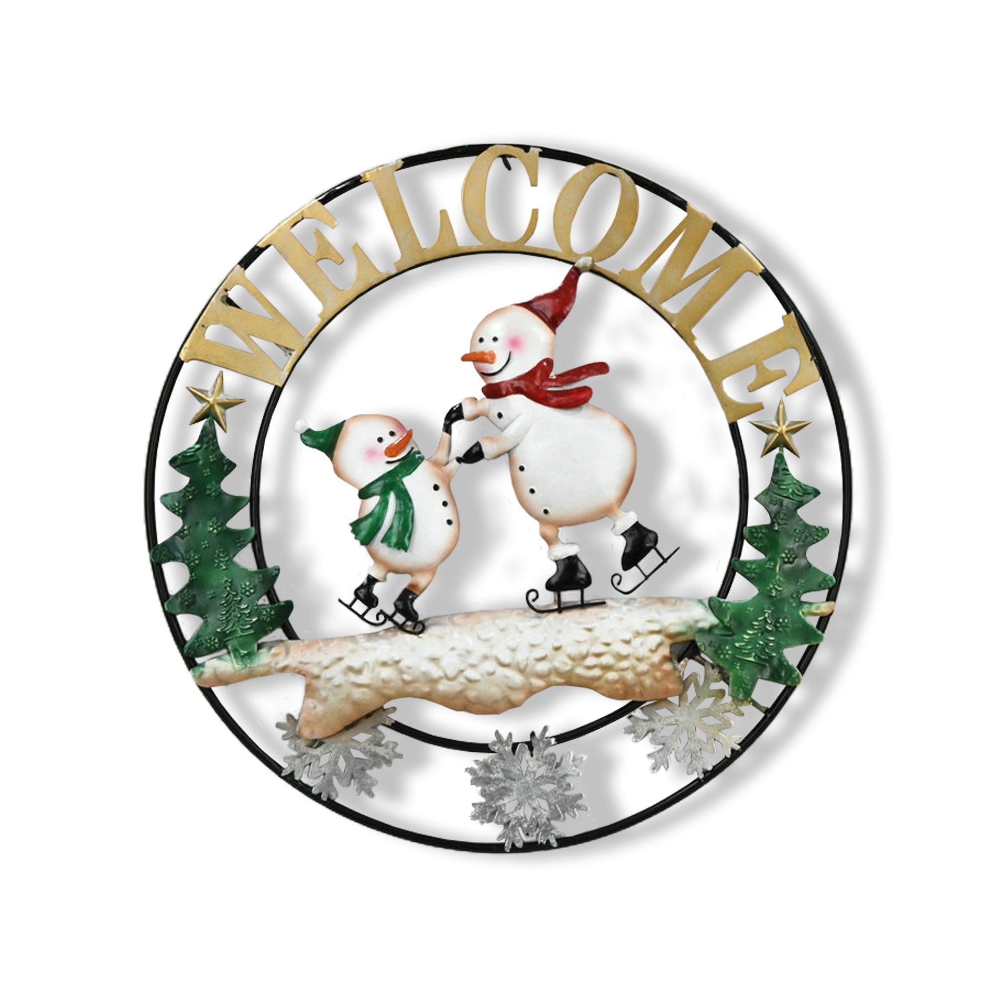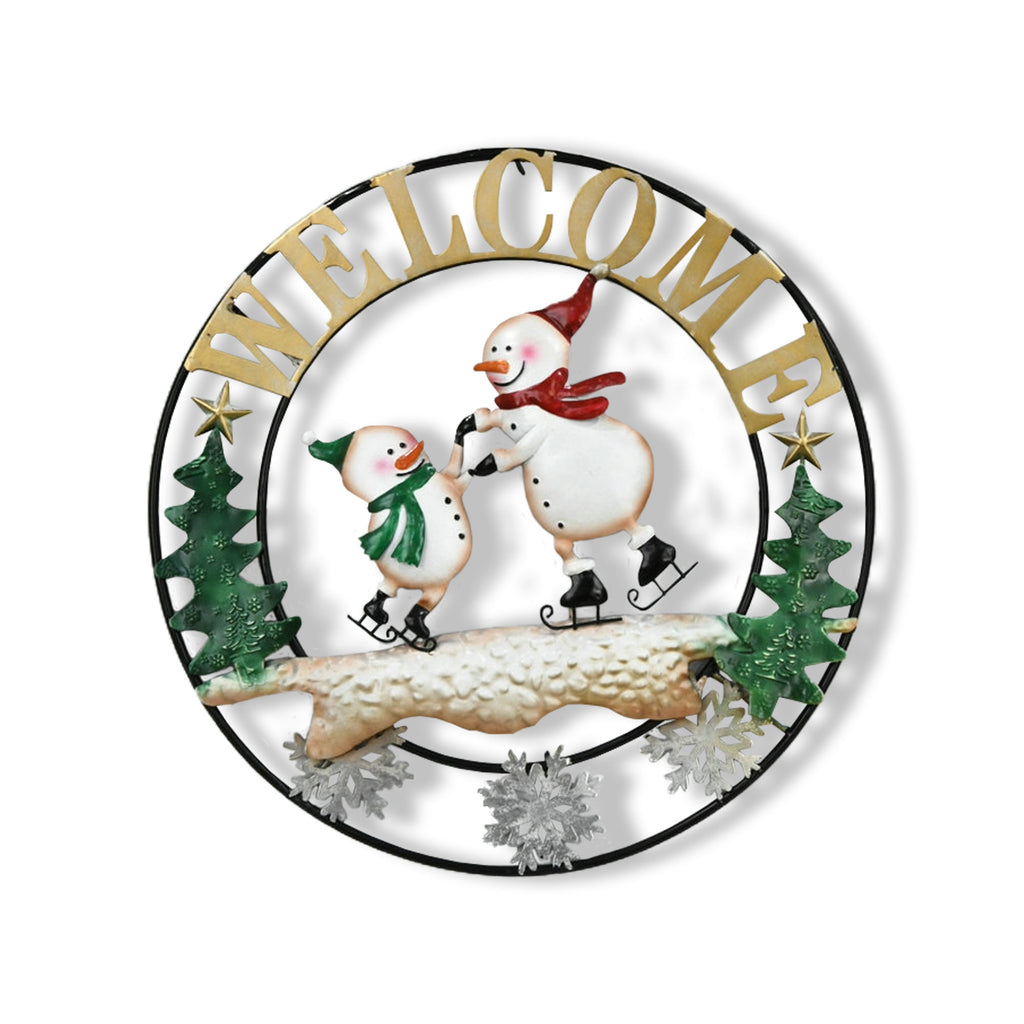 Cercle de bienvenue en métal avec bonhommes de neige patineurs 6PC/CASE