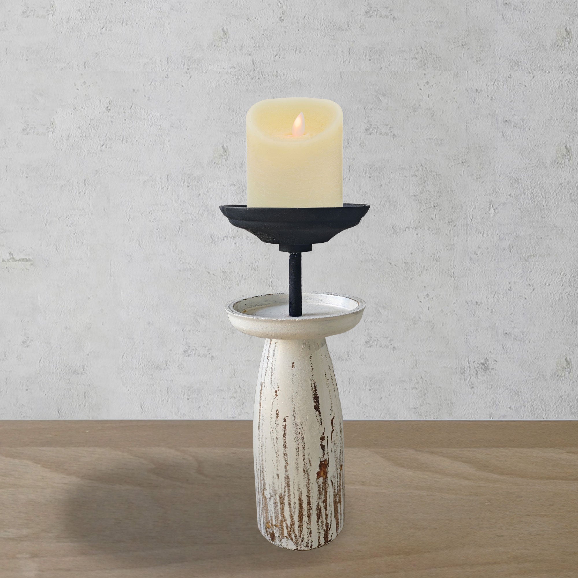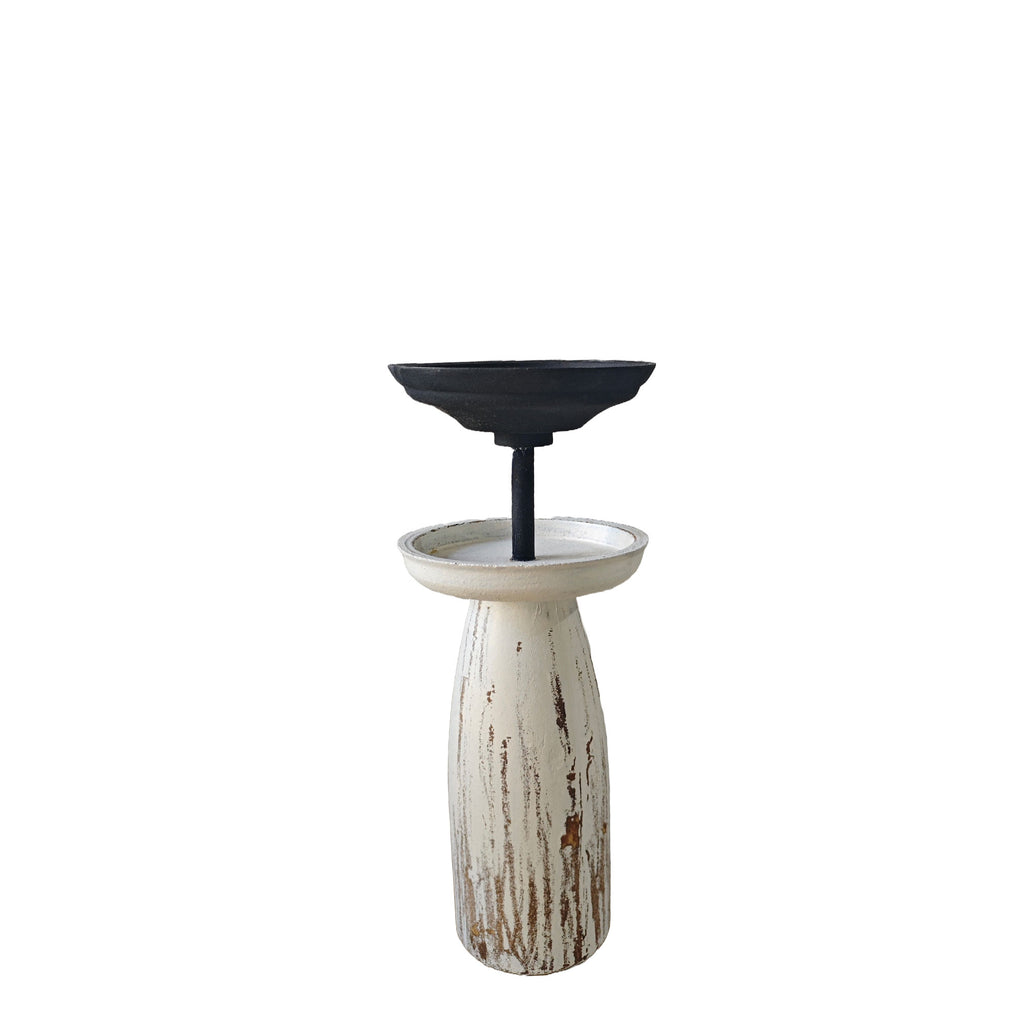 9.5 inch Wood & Metal Whitewashed Pillar Candle Holder 12PC/CASE
